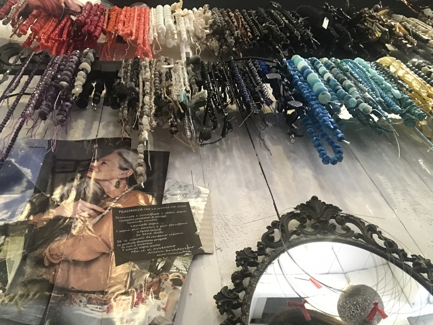 Chi varca la mia soglia porta via il tintinnio dei mazzetti portafortuna che ho recuperato da un’antica tradizione orafa pugliese e che lascio ondeggiare alle folate del vento marino, e non dimentica di aver affondato mani e décolleté in nuvole di cashmere che riscaldano i lunghi inverni cittadini.